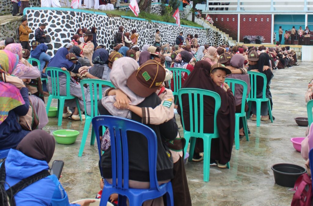 Di antara barisan tamu yang hadir, seorang ibu berdiri dengan mata berkaca-kaca. Lestari, orang tua dari salah satu Pramuka Garuda, tak mampu menyembunyikan rasa harunya.