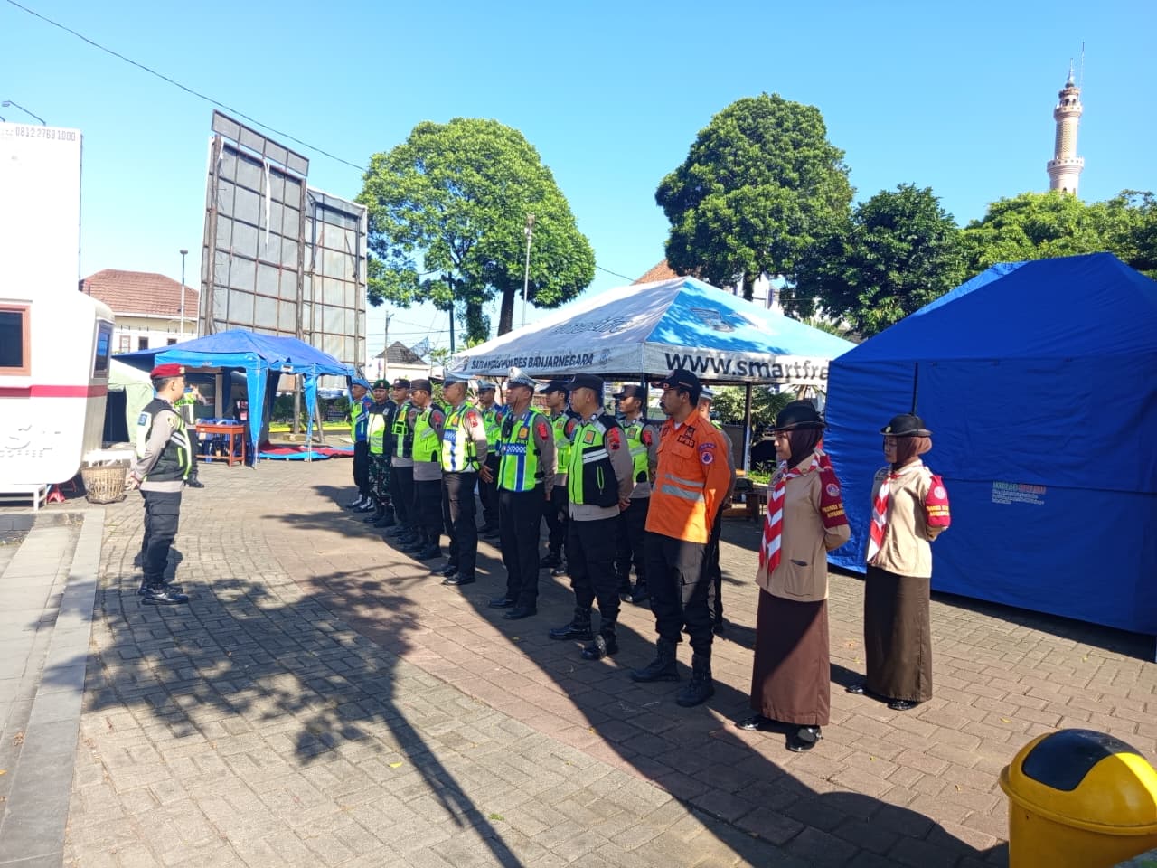 Banjarnegara – Gerakan Pramuka Kwartir Cabang (Kwarcab) Banjarnegara melalui Pramuka Peduli melaksanakan Aksi Pramuka Peduli Karya Bakti Lebaran 2026 pada Jumat (13/3/2026) di kawasan Alun-Alun Kabupaten Banjarnegara. Kegiatan ini berlangsung sejak pukul 08.00 hingga 23.00 WIB dengan sistem dua shift guna memastikan pelayanan kepada masyarakat dapat berjalan secara optimal sepanjang hari.