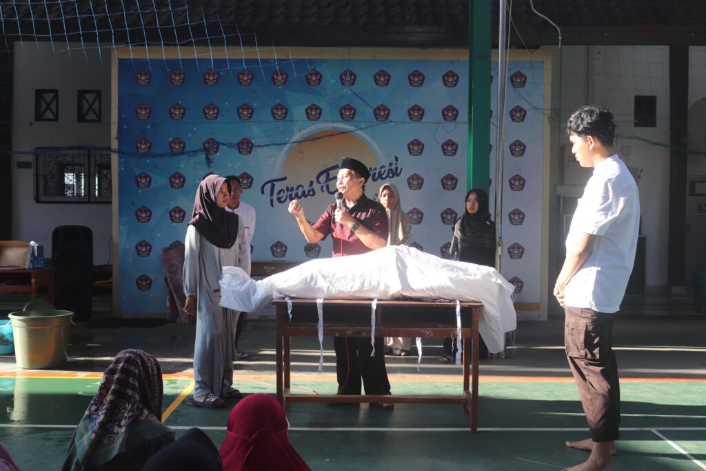Tidak hanya pembelajaran teori, peserta juga mendapatkan pengalaman praktik keagamaan melalui pelatihan pemulasaraan jenazah yang dipandu oleh Pak Slamet sebagai narasumber. Dalam sesi ini, para siswa diperkenalkan secara langsung tata cara mengurus jenazah sesuai syariat Islam, mulai dari memandikan, mengkafani, menyolatkan hingga persiapan pemakaman.